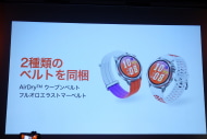 カラーバリエーションはオレンジ、ブルー、ブラックの3色展開。バッテリー駆動時間は、通常使用で最大14日間、GPS連続使用で最大32時間となっている。本体の重さは約34.5g、厚さは約10.7mmと、前モデルから薄型・軽量化を実現した。ベルトは通気性に優れた「AirDryウーブンベルト」に加え、速乾性と耐久性のある「フルオロエラストマーベルト」も同梱される。