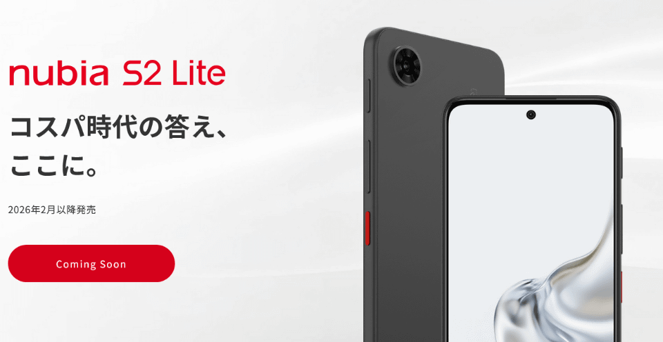 ZTEジャパンは、nubiaブランドの新製品で、5G対応のSIMフリースマートフォン「nubia S2 Lite」を19日に発売する。価格は2万9800円。
