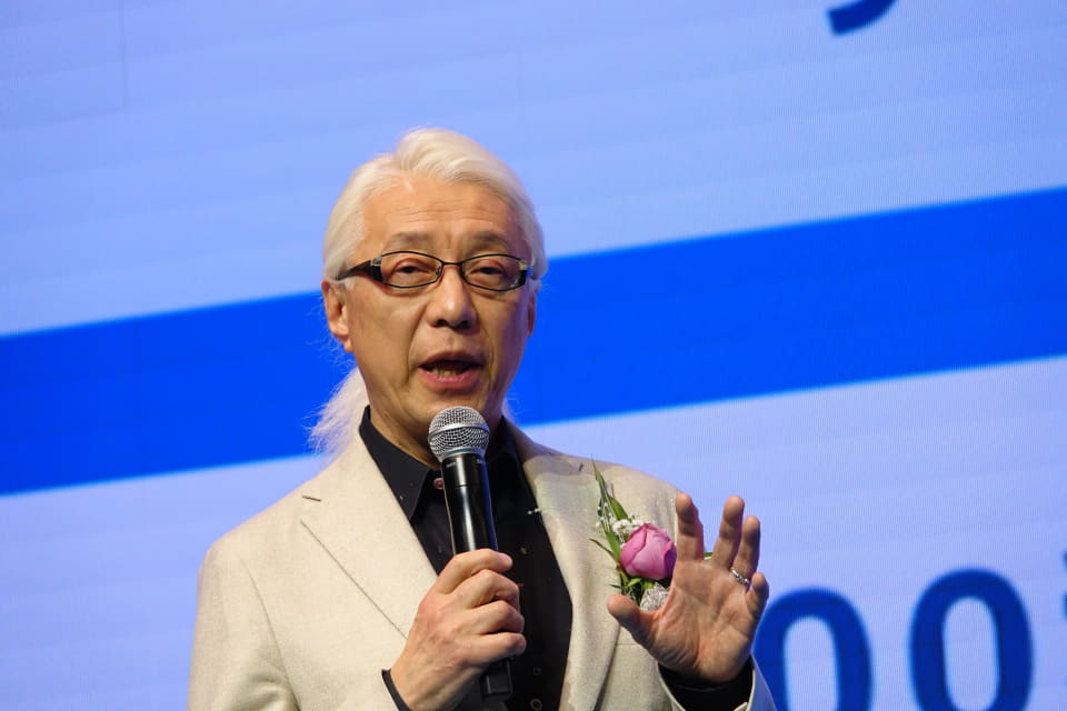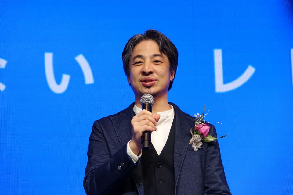 発表会の後半には、同社の取締役に就任した川上量生氏とGACKT、西村博之氏、庵野秀明氏、社長の矢倉氏が登壇。