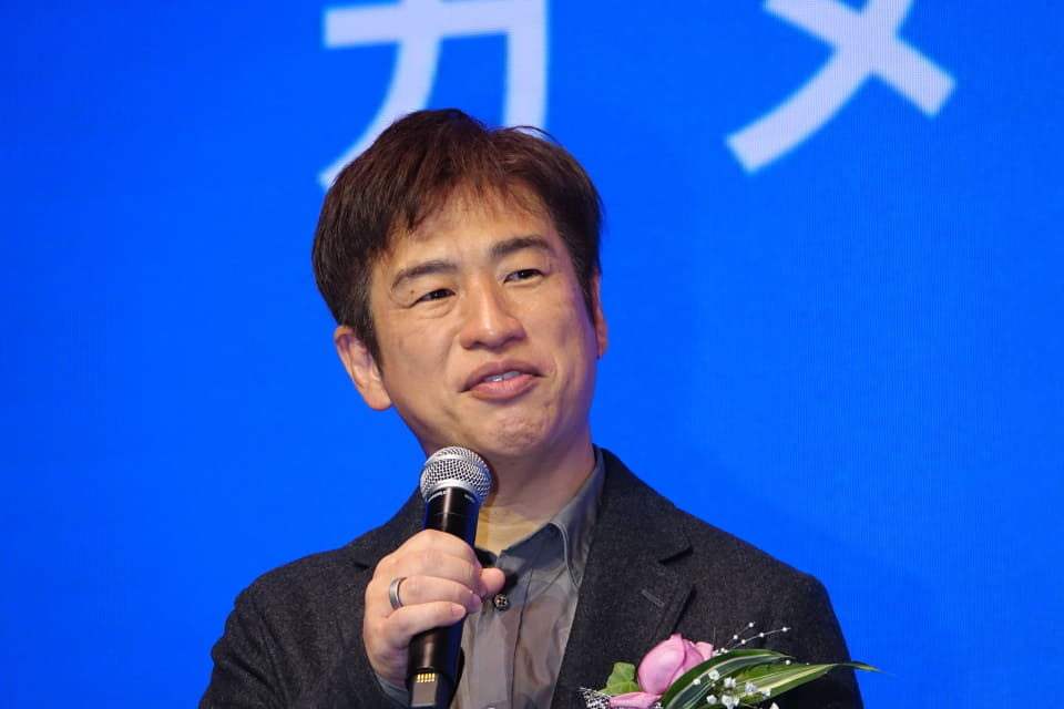 18日に開催された発表会では、代表取締役社長の矢倉純之介氏と俳優の佐藤健、監修した手塚眞氏がアプリの紹介をした後、同社の取締役に名を連ねる川上量生氏とGACKT、西村博之氏、庵野秀明氏が登壇し、アプリへの期待感などを語った。