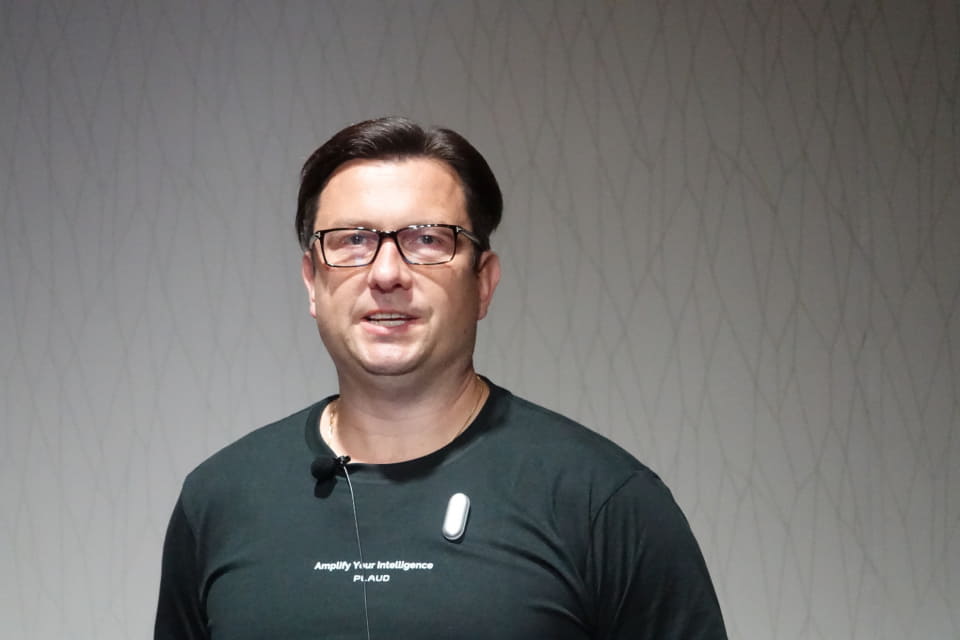 新製品発表会には、米国本社のオペレーション・金融ヴァイスプレジデントのジョージ・ズヴィアギン氏が登場。「多くのユーザーに共通する課題は、アイデア不足ではなく、会話の中での気づきや意思決定が十分に残せないまま流れてしまっていること」と指摘するズヴィアギン氏は、「重要な情報は会話の中で生まれる。Plaudは会話の中の情報をそのまま知識に変える」と同社製品の役割を語る。