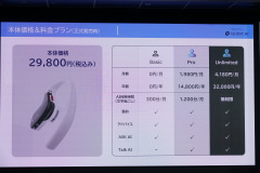 本体価格は2万9800円。Makuakeでの応援購入価格は、本体とAI有料プラン(1年間)のセットが2万6760円(超超早割40%オフ)、本体のみの場合は2万860円(超超早割30%オフ)など。プランには無料の「Basic」、月額1980円の「Pro」、月額4180円の「Unlimited」がある。BasicプランとProプランでは、AI文字起こしがそれぞれ300分/月、1200分/月利用でき、Unlimitedプランでは時間無制限となる。Basicプランでは、専用アプリの「Talk AI」機能が利用できない。