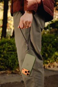 「モバイル クロスボディ ストラップ」は、シンプルな2点支持のショルダーストラップ。アクセサリーループを活用し、1点支持への切り替えや、デバイスの取り外し時にストラップを体に沿わせてまとめる使い方に対応する。価格は9900円。