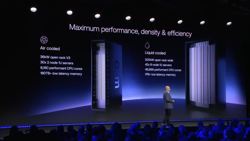 ラックスケールでの効率を重視し、高密度なサーバー構成に対応する。標準的な空冷36kWラックでは、30ブレードで合計8160コアの稼働が可能。