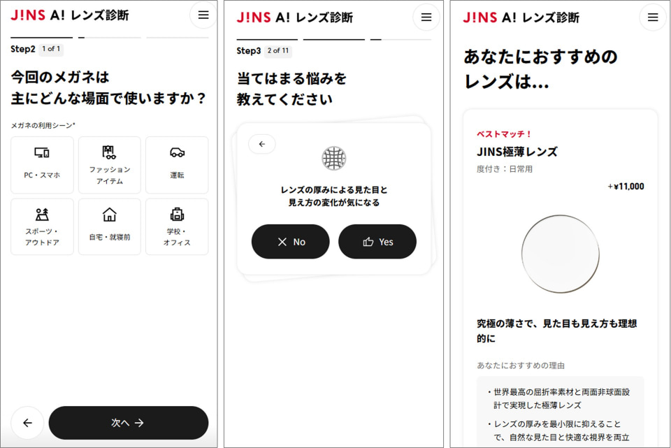 JINS AIで「レンズ診断」スタート、まずは銀座店で