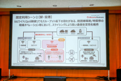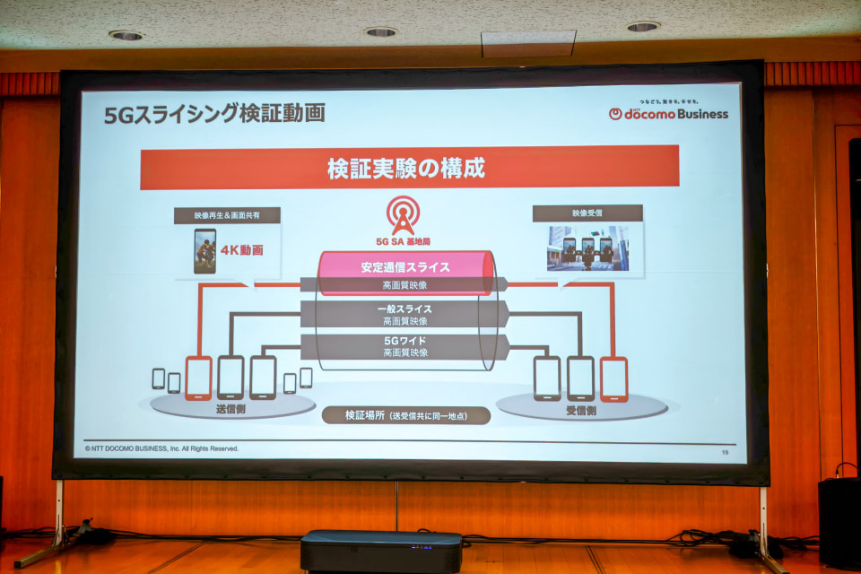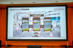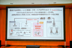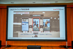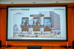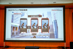 説明会では、5Gスライシングと5Gワイドを比較するデモも設置。通信負荷を意図的に高めた環境で4K映像伝送の比較が行われた。実際に確認すると、5Gスライシングに対して5Gワイドは画質が荒くなったり、映像が停止したりする場面が見られた。