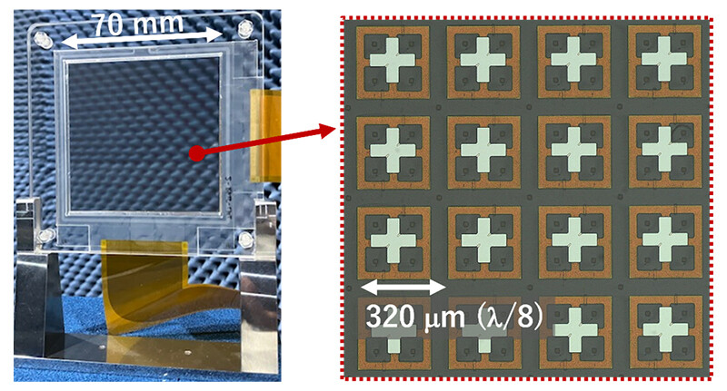 試作デバイスにサブテラヘルツ帯の電波を入射し、目的とする伝搬に応じた制御信号を入力して透過波の信号強度を評価したところ、透過波の方向および集光位置の可変制御を設計通りに実現できたという。また、試作した構造では素子空間を波長の8分の1以下にすることで、従来のアレーアンテナでは難しい複雑なビーム形状も形成可能になる。