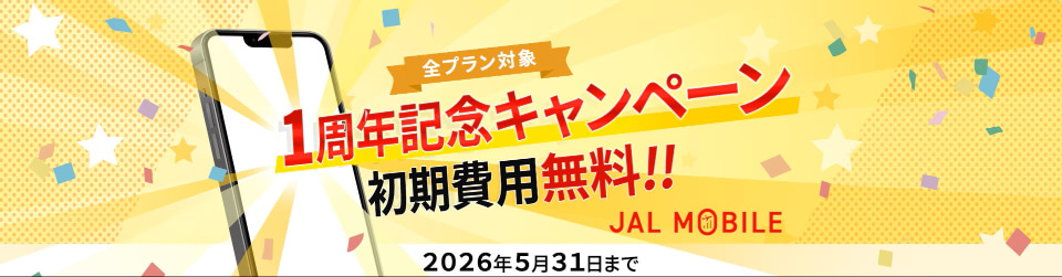 日本航空は、MVNOサービス「JALモバイル」で、1周年を記念したキャンペーンを開始した。期間は5月31日まで。