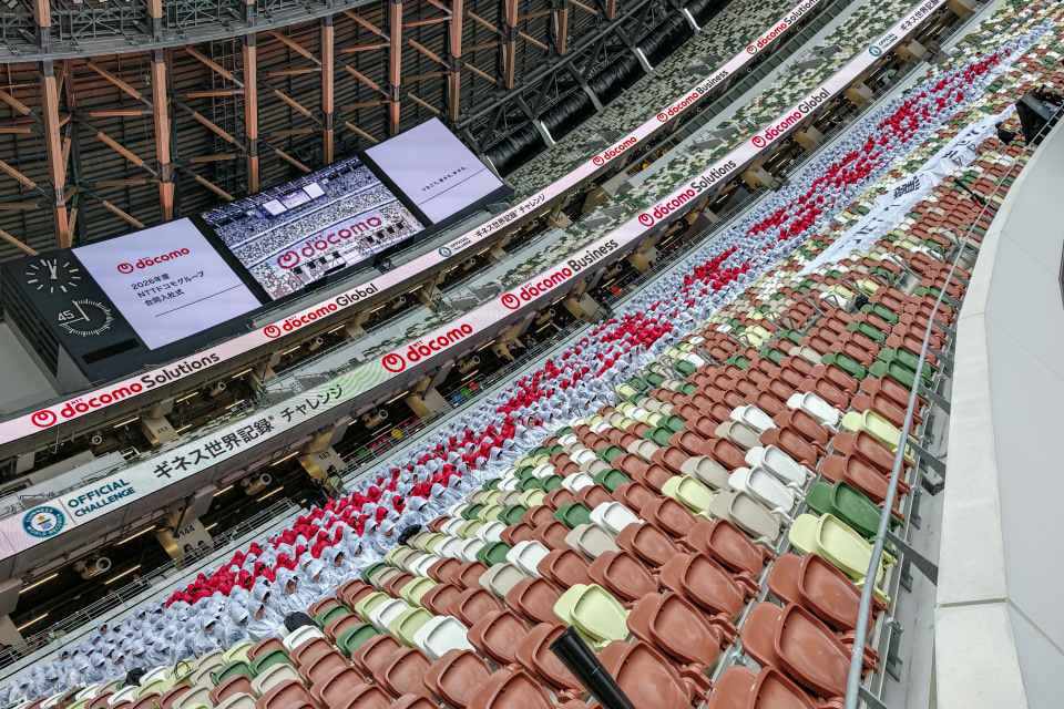 ドコモグループ入社式、MUFGスタジアムで開催 新入社員1390人でギネス世界記録に挑戦