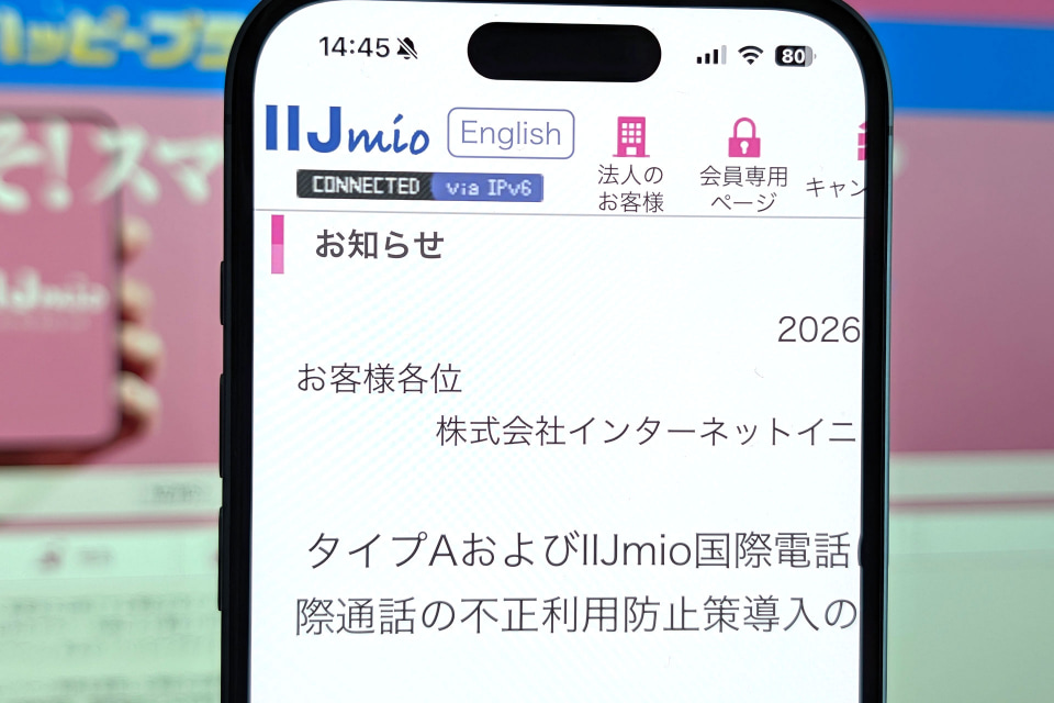 インターネットイニシアティブ(IIJ)は、MVNOサービス「IIJmio」で、高額な国際通話を防止するための対策を6月以降に導入すると発表した。au網(タイプA)とIIJmio国際電話のユーザーが対象。