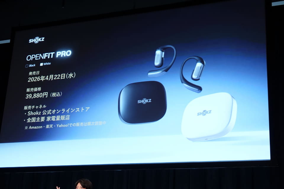 Shokz Japanは6日、オープンイヤー型のフルワイヤレスイヤホン「OpenFit Pro」を4月22日に発売すると発表した。価格は3万9880円で7日から予約受付を開始する。