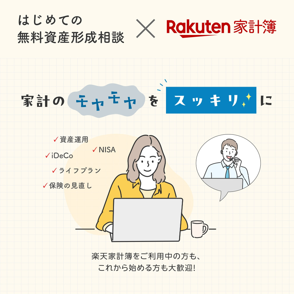 「楽天家計簿」で無料の資産形成相談、初めてならギフトカードもらえる