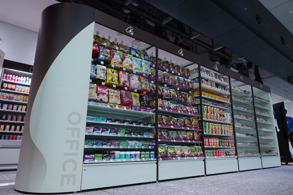 パンや菓子類はもちろん、弁当類や飲み物も取り揃えており、文具なども用意している。コーヒーマシンや電子レンジもあり、通常のコンビニと遜色ない使い勝手を実現した。法規制などの観点から酒・タバコ類は販売できないほか、収納代行などには対応しない。実証実験店舗の営業時間は7時~22時(土日祝休業)だが、仕組み上は24時間営業にも対応する。