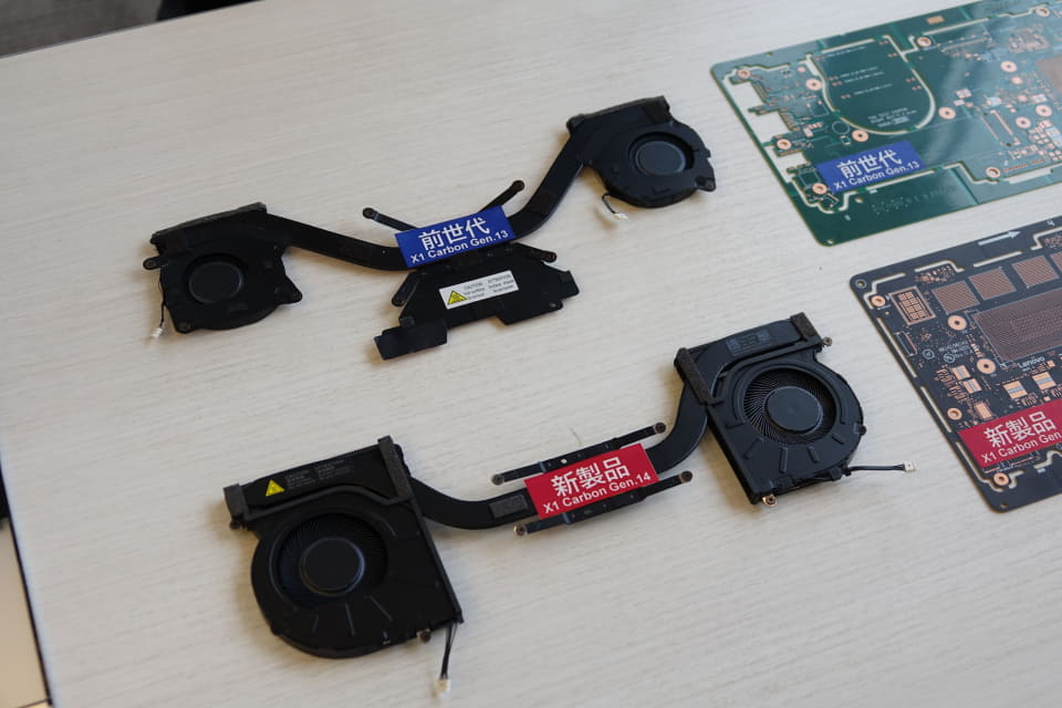 冷却ファンは、これまでのモデルから81%大型化された一方、素材の一部を銅からアルミに置き換えたことで軽量化している。キーボードの隙間などさまざまなところから風を吸い込めるようにし、CPUなど発熱モジュールに直接送風することで、 AI時代に求められる高い性能を維持できる。