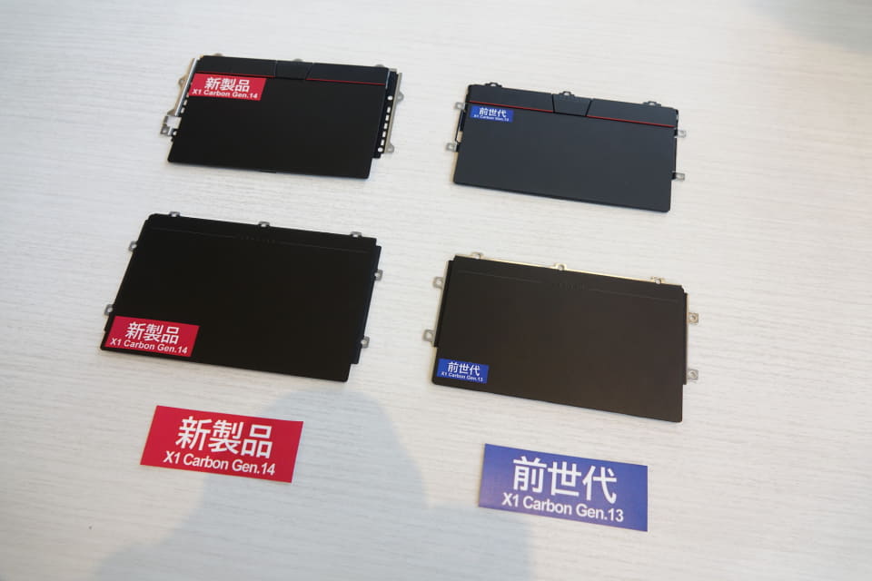 モジュールの大型化だけでなく、部品の再配置も進める。たとえば、従来ヒンジ部分に内蔵していたWi-Fiアンテナを、キーボード下の空いたスペースに収めることで、ヒンジ部の小型化を実施。キーボード上部の部品を再配置することで、キーボードをヒンジに近い場所に移設し、空いたスペースをタッチパッドの大型化に活用している。