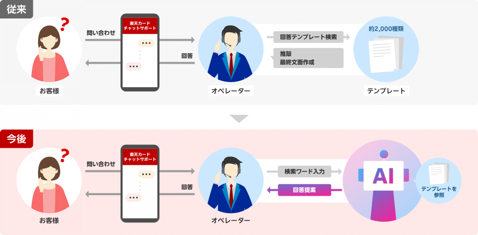 楽天カードは、ユーザーからの問い合わせに対応する「楽天カードチャットサポート」において、AIが最適な回答テンプレートをオペレーターへ提案する検索システムを導入した。蓄積された問い合わせデータを活用し、カスタマーサポートの迅速化を図る。