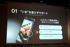 本体右側面には、AIをすぐに起動できる「AIボタン」が搭載される。ボタンを1回押すとAIが起動し、アプリの操作中に2回押すと、画面上の画像やテキストを理解・記憶してその後の提案に活用される。