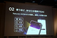 搭載される「Natural AI」は、ユーザーの意図を理解して一人ひとりに寄り添ったサポートや提案を行う。ユーザーとの会話や指示内容は「Understanding System」で蓄積・管理され、予測や提案に活用される仕組み。
