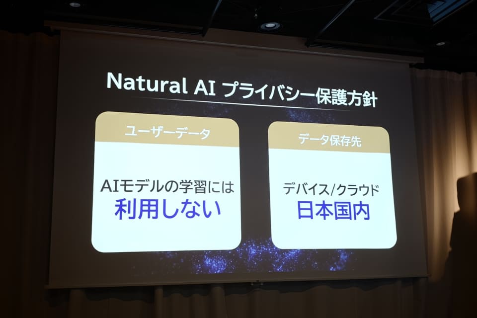 なお、ユーザーデータはモデルの学習に利用されず、保存先もデバイスや日本国内のサーバーに保存される。