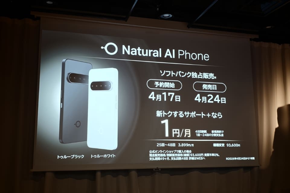 「Natural AI Phone」は、1年間はソフトバンクでの独占販売。価格は9万3600円。