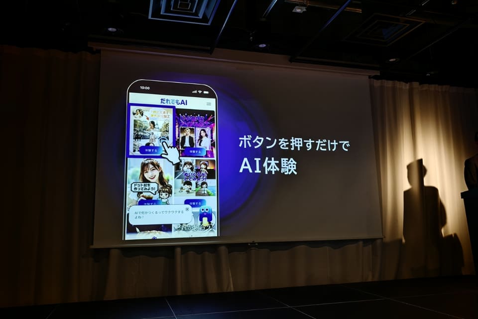 「だれでもAI」は、AIに初めて触れる層や日常的に利用したい層に向け、AIサービスを体験できる場として提供される。