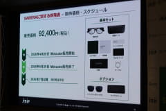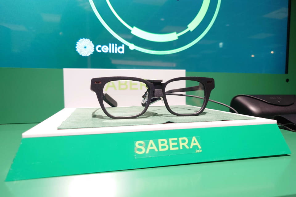 その第1弾製品となるのが、SABERA スマート眼鏡。あえて「眼鏡」としているのは、川股社長によると「最先端のガジェットではなく、人によっては眼鏡の代わりになり得る可能性を示したい」という意図の表れだとしている。レンズの光学技術はCellid、フレームはボストンクラブの技術を用いており、jig.jpはソフトウェア開発を担う。