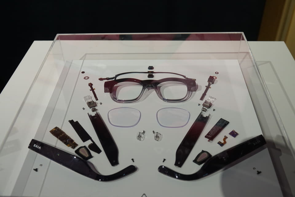「VIVE Eagle」は、HTC製のスマートグラス。スマートフォンのAIアシスタントと連携してスマートフォンを手に取ることなくハンズフリーで利用できる。本体のボタンでAIを起動でき、翻訳や検索、ニュースの確認ができる。人の名前や駐車した場所など、AIに尋ねて生活をサポートしてもらえる。