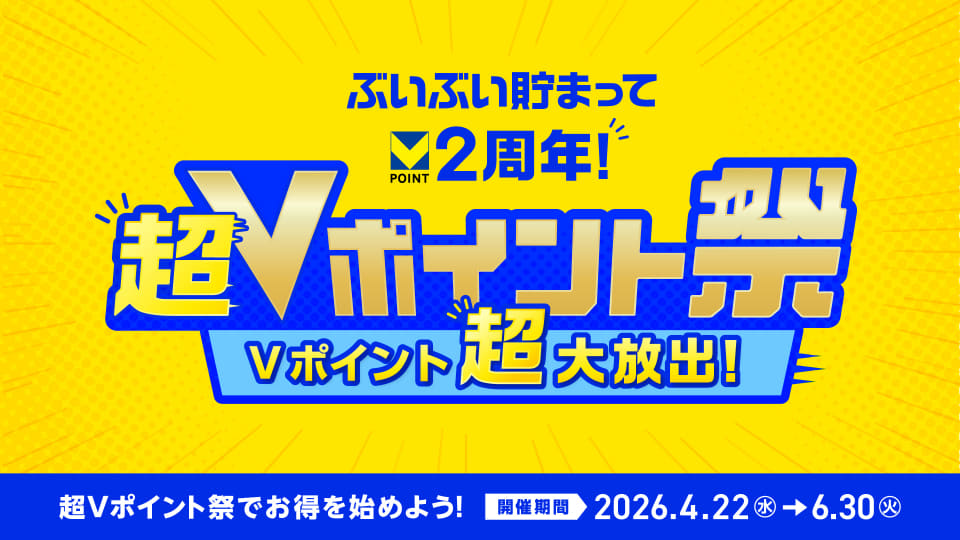Vポイントマーケティングと三井住友カードは22日、共通ポイントの「Vポイント」で、2周年を記念したキャンペーン「超Vポイント祭」を開始した。期間は6月30日まで。