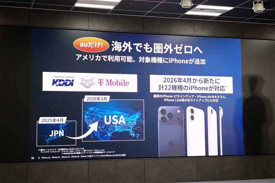 KDDIと沖縄セルラーは、スマートフォンと衛星が直接通信するサービス「au Starlink Direct」の海外ローミング接続について、対応国を4カ国に拡大すると発表した。