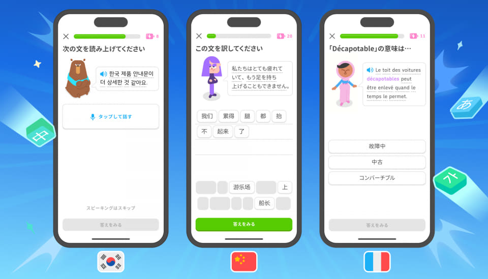 「Duolingo」で就業レベルの語学が学べるように、英語や中国語など9言語で対応