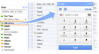 Google Voiceは、電話管理サービスとして主に転送サービスなどを提供していたが、機能の拡充により、Gmailのメニューから電話がかけられるようになった。パソコン側では、音声チャットなどに用いるスピーカーとマイクを使用する。通話料は、年内は米国およびカナダ宛が無料。イギリス、フランス、ドイツ、中国宛など主要国への固定電話へは1分あたり2セント(約1.7円)と低い通話料に設定されている。通話料は高くなるものの、携帯電話にもかけられる。日本宛は、固定電話が1分あたり2セント、携帯電話が1分あたり11セントとなっている。