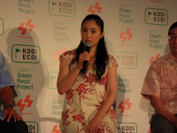 本日の贈呈式には、女優でKDDIのエコ担当最高責任者 ECO 仲間由紀恵も登場。15歳まで沖縄に住んでいたという仲間は「海の現状を金城さんから聞いて、なんで今まで知らなかったんだろうと後悔した」という。金城氏が「まだ希望がある」と語っていたことを受け、仲間は「たくさんの人たちが関心を持ち、みんなの気持ちがサンゴに向くようになれば、沖縄の海はもっと綺麗な状態に戻ることができる」と語った。