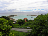 | 贈呈式に登壇した4人でフォトセッション | 読谷村の風景。ここでサンゴが養殖されている |