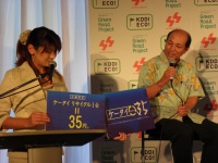 トークセッションには小野寺氏、金城氏、仲間のほかに、沖縄セルラーの代表取締役社長、北川洋氏が登場。「今回のような取り組みは、継続することも重要」と述べ、同社で独自に行う施策の「ケータイ 35 リサイクル」を発表した。この活動は、サンゴの保全活動支援のために行われるもので、使用しなくなった端末を1台回収するごとに、35円をアクアプラネットに寄付していく。なお、35円は“サンゴ”とゴロ合わせになっている。最後に、金城氏は「今の以上気象や温暖化などを見ると、どうしても不安が大きく指をくわえてみているだけになってしまう。アクションを起こして続けていけば、道を作っていけると信じている。未来に、環境をつなげていくことができると思う」と話し、贈呈式を締めくくった。