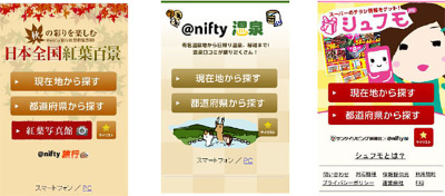 今回、スマートフォン対応となったサービスは、外出時に役立つものが中心となっている。具体的には、紅葉スポットを紹介する「紅葉特集2010」、口コミを含む温泉関連情報の「@nifty温泉」、スーパーマーケットの特売情報を扱う「シュフモ」、スイーツ関連情報の「スイーツ部」国内旅行情報の「@nifty旅行」、飲食店情報の「@nifty厳選レストラン」、映画情報の「@nifty映画」、12星座占いの「占い@nifty」、天気予報を提供する「@nifty天気予報」、パチンコ・パチスロ情報の「777@nifty」、ブログサービス「ココログ」のナビゲーションページとなる。