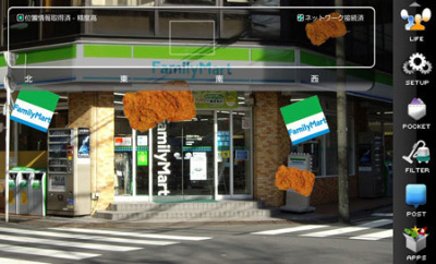 | セカイカメラでの表示画面サンプル(ファミマ・ドット・コム報道資料より) |