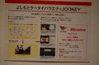 「よしもとケータイバラエティ JOOKEY」(ベルロックメディア提供)は、吉本興業の芸人による動画コンテンツが配信されるサービス。吉本芸人による動画コンテンツは数多く存在するが、本サービスでは、旬な話題をテーマにした芸人の動画が毎日10本(平日のみ)配信される。動画は90秒程度で、気軽に観賞できる。11月に正式サービス(月額315円)が開始される予定だが、それまでXiタブレットは無料で先行サービスが利用できる。
