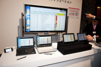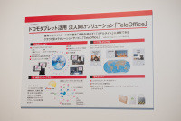 アイディープソリューションズは、Xi対応の法人向けソリューションとして、タブレット端末を活用した「TeleOffice」を紹介していた。同サービスは、クラウド上に登録した資料などのデータを、各端末の画面で共有できるというもの。タブレット端末やスマートフォンもサポートしており、会場では「GALAXY Tab 10.1 LTE」「ARROWS Tab LTE F-01D」を利用して、資料を共有し、画面に手書きで指示を書き込む様子なども披露されていた。