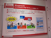 NTTドコモブースでは、タブレットやスマートフォンとクラウドサービスを連携させた法人向けソリューションが紹介されていた。