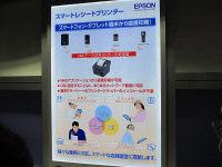 エプソン販売のブースでは、スマートフォンやタブレット端末から直接印刷できるプリンタ「スマートレシートプリンター」を展示していた。