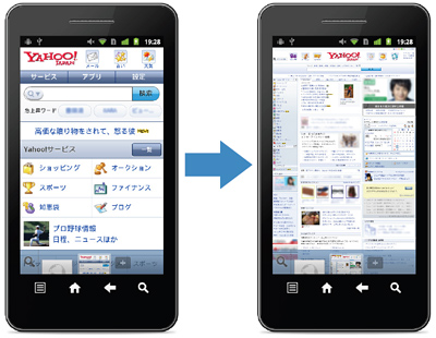 表示モードの設定は、ページの余白やアドレスバーを長押しすることで行え、一度設定すると記憶される。
