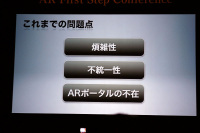 「AR First Step Conference」で最初に壇上に立ったKDDI新規事業統括本部 新規ビジネス推進本部長の雨宮 俊武氏は一般層におけるARの認知度は低いことから、「日常化」をキーワードに、浸透を図ると説明。そこで新たに立ち上げたのが「SATCH」であり、アプリの登場を促進するため、開発者向けキットを提供したと語る。