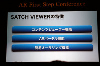 さらに同氏は、ARアプリの課題として、企業の販促ごと、あるいはARサービスごとにアプリを1つ1つダウンロードする必要があると指摘。たとえばQRコードやおサイフケータイは、カメラにプリセットされる機能を使ったり、端末をかざすだけだったりするなど、どのようなキャンペーン/サービスでも同じ手順で操作する。ARアプリでも、そうした使い勝手の統一が必要であり、そのために用意されるのが来年2月提供予定という「SATCH VIEWER」だ。ARコンテンツを楽しめる機能のほか、ポータル機能も用意され、さらに手軽にAR風のアクションを作成できる“簡易オーサリング機能”が用意されている。