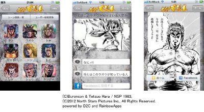ディーツー コミュニケーションズ(D2C)は、ノース・スターズ・ピクチャーズ(NSP)、ジークラウドと共同で、iPhone向けアプリ「『北斗の拳』セリフ百裂拳」の提供を開始した。利用料は無料。