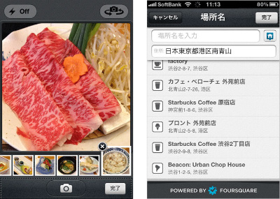 位置情報サービス「Foursquare」のデータベースを参照できるようになり、食事記録を登録する際、Foursquareの店舗情報をあわせて記録できる。