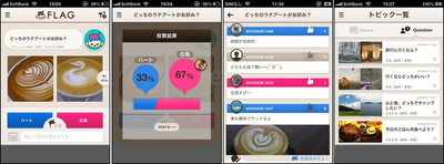 今回提供が開始された投票アプリ「FLAG」は、ニュースやほかのユーザーからの質問に対し二択で回答し、自分の意見が多数派か少数派かを見たり、みんなの意見を共有したりできるというもの。自動的に更新される時事ニュース、芸能ニュースなどのほか、会員登録不要で質問を投稿することも可能。