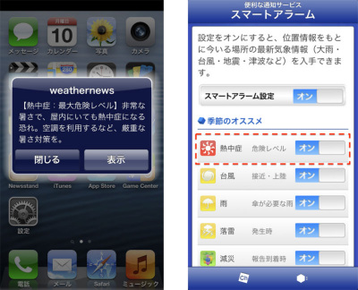 ウェザーニューズは、スマートフォン向けアプリ「ウェザーニュースタッチ」で、「スマートアラーム熱中症モード」の提供を開始した。有料会員であれば利用できる。