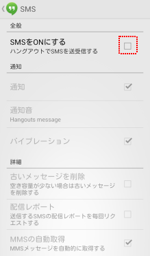 しかし、「ハングアウト」を最新版にアップデートした後に表示されるダイアログなどでこのSMS機能を設定・有効化していた場合、auのEメール( @ezweb.ne.jp )の自動受信ができなくなる。KDDIでは、自動受信を行う場合、「ハングアウト」のSMS機能を無効化するよう案内している。