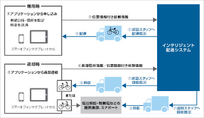 ソフトバンクと駐輪場の管理・運営などを行うアーキエムズ、ソフトバンクグループのリアライズ・モバイル・コミュニケーションズの3社は、ユーザーが専用アプリで指定した場所に自転車を配送・返却を行える自転車レンタルサービスを開始する。開始時期は2015年10月下旬以降、サービス開始時点では京都市中心部で提供を行う。料金は1日1000円、別途配送料が500円かかる。サービス開始の記念キャンペーン中は、配送料は無料。