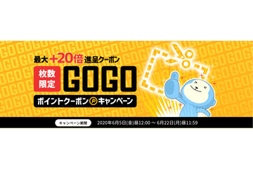 22日11時59分まで「枚数限定 GOGOポイントクーポンキャンペーン」を実施します。クーポンを使用して対象商品を購入すると、ぷららポイントが最大20倍付与されます。